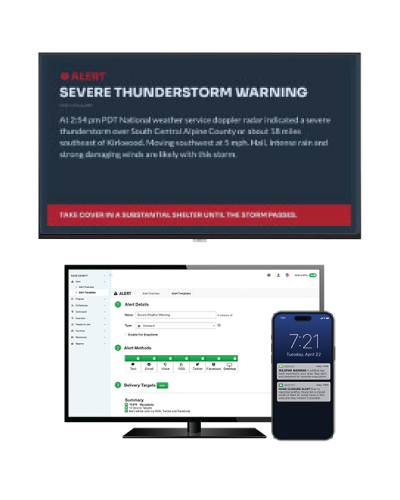 ScreenCloud and Rave Alert transform digital signage into real-time mass notification endpoints, delivering critical visual alerts like lockdowns, evacuations, and weather warnings. During emergencies, Rave Alert overrides content with bold text, visuals, and branding, ensuring clear communication where auditory alerts fall short or silent notifications are required. Perfect for campuses, offices, healthcare facilities, and transit hubs, this ADA-compliant solution enhances safety across your entire facility.